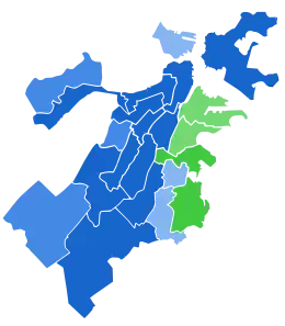 ![]() Results by ward Menino: 50–60% 60–70% 70–80% Brett: 50–60% 60–70% | ||||||||||||||||