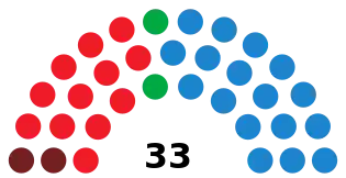 Last election 15 seats, 41.7% 16 seats, 42.4% 0 seats, 4.5%