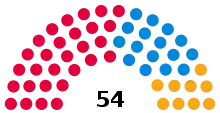 Party Seats Gains Losses Net gain/loss Seats % Votes % Votes +/−