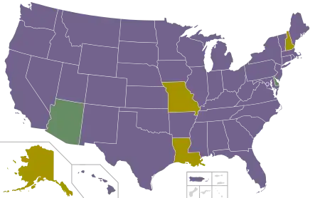 ![]() Gold denotes a state won by Pat Buchanan. Green denotes a state won by Steve Forbes. Purple denotes a state won by Bob Dole. Grey denotes a territory that did not hold a primary. | |||||||||||||||||||||||||||||