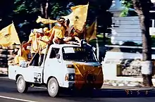 Indonesian law at the time only allowed three organisations to participate in elections - the United Development Party (PPP), the Indonesian Democratic Party (PDI) and Golkar (functional group), an organisation which started off as a confederation of NGOs, and was officially not a party.