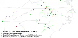 Survey of all storm reports during the 3-20-98 severe weather outbreak