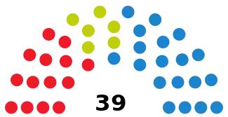 Last election 13 seats, 32.5% 10 seats, 25.1% 6 seats, 14.6%