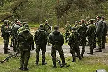 The 1st Marine Regiment[2] (Swedish: Stockholms amfibieregemente, Amf 1) is an amphibian regiment of the Swedish Amphibious Corps based at the Berga Naval Base in Berga, Haninge Municipality. Raised from the Vaxholm Coastal Artillery Regiment (KA 1) in 2000 when the Swedish Amphibious Corps was formed, the 1st Marine Regiment has a large geographical spread where units are trained and grouped at Berga, south of Stockholm, in Gothenburg and in Gotland. Although the unit's natural combat environment is coastal zones, river deltas and other amphibious areas, the unit has the ability to operate in all types of terrain, such as desert. The 1st Marine Regiment has participated in operations in, for example, Kosovo, Gulf of Aden, Chad and Afghanistan.
