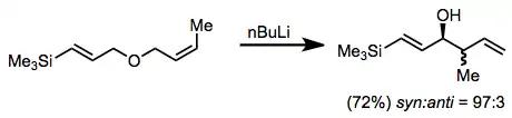 - ↑ Mikami, K.; Kishi, N.; Nakai, T. (1989). "Silicon-directed regiocontrol in Witting rearrangements of bis-allyl ethers and allyl propargyl ethers". Chem. Lett. 18 (9): 1683–1686. doi:10.1246/cl.1989.1683.