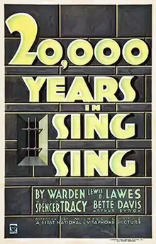 20,000 Years in Sing Sing is a 1932 American pre-Code drama film set in Sing Sing Penitentiary, the maximum security prison in Ossining, New York, starring Spencer Tracy as an inmate and Bette Davis as his girlfriend. It was directed by Michael Curtiz and based upon the nonfiction book Twenty Thousand Years in Sing Sing, written by Lewis E. Lawes, the warden of Sing Sing from 1920 to 1941.