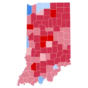 | Vanderburgh | 35,846 | 54.13% | 29,222 | 44.13% | 1,153 | 1.74% | 6,624 | 10.00% | 66,221 |