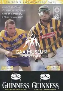 The 2002 All-Ireland Senior Hurling Championship Final was the 115th All-Ireland Hurling Final and the culmination of the 2002 All-Ireland Senior Hurling Championship, a tournament for the top hurling counties. The match was held at Croke Park, Dublin, on 8 September 2002, between Kilkenny and Clare. Kilkenny won on a score line of 2–20 to 0–19.[1] The winning captain for Kilkenny was Andy Comerford.[2]