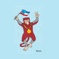 The Mascot of the 2002 Sukma Games is a [11]Proboscis monkey named Bayau. It is said that the Proboscis monkey is a reddish-brown arboreal Old World monkey that is endemic to the south-east Asian island of Borneo. In Sabah, it can be found in Sukau, Sg. Segama, Klias and other places in small population. Apart from having a large body size, it can swing fast from tree to tree and swimming. The adoption of the proboscis monkey is to promote eco-tourism and to create awareness about the animal.[12][13]