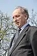 The junior party in the coalition, the Christian Democratic Party, meanwhile nominated the chairman of the Senate and former Prime Minister between 1990 and 1992, Petr Pithart as their candidate.[30][32] He was also supported by the Freedom Union party, another party in the governing coalition.[31]