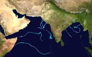 The India Meteorological Department (IMD) was designated a Regional Specialized Meteorological Center by the World Meteorological Organization in July 1988 to monitor and warn on tropical cyclones in the northern Indian Ocean. The basin is defined between 45° and 100° E, and north of the equator. The agency also used geostationary satellites and a network of buoys to track the storms, and utilized various tropical cyclone forecast models to predict future tracks.[1] The American-based Joint Typhoon Warning Center (JTWC) also issued warnings for storms in the basin on an unofficial basis.[2]