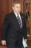 Glazyev was Minister of Foreign Economic Relations of Russia under Boris Yeltsin, a Communist member of the State Duma and in 2003 became co-chairman of the newly established Rodina party. However, he failed to win the Rodina nomination because of a power struggle with Dmitri Rogozin, and ran as independent candidate. He campaigned as a critic of economic reforms. He argued that post-Communist governments have ignored social justice and promised to improve welfare. | |