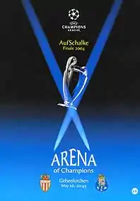 The 2004 UEFA Champions League final was an association football match played on 26 May 2004 to decide the winner of the 2003–04 UEFA Champions League. AS Monaco, a Monaco-based club representing the French Football Federation, faced Portuguese side Porto at the Arena AufSchalke in Gelsenkirchen, Germany. Porto won the match 3–0, with Carlos Alberto, Deco and Dmitri Alenichev scoring the goals in a dominant game from Mourinho's Porto. Deco was named Man of the Match.