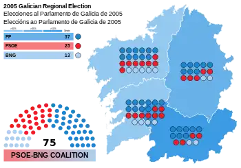 7. 1 2 "Parliament of Galicia election results, 19 June 2005" (PDF). www.juntaelectoralcentral.es (in Spanish). Central Electoral Commission. 13 July 2005. Retrieved 25 September 2017.