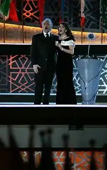 The 2006 Asian Games opening ceremony was held on 1 December at the multi-purpose Khalifa International Stadium.[1] The Opening Ceremony was described by the media to be one of the most breath-taking and technologically spectacular multi-sports event ceremony, and the most expensive multi-sports event ceremony (including both Opening and Closing ceremonies) in the history of Asian Games at that time.[2] It was created and produced by David Atkins who conducted the 2000 Summer Olympics opener[3] and was filmed and broadcast live by International Games Broadcast Services' (IGBS) precursor Doha Asian Games Broadcast Services (DAGBS).[4][5] 10 composers from Qatar, Lebanon, Egypt, Singapore, Japan, India, South Korea, Germany and Australia made the musical scores of the ceremonies.