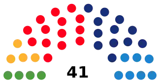 Last election 15 seats, 33.6% 9 seats, 21.4% 7 seats, 16.1%