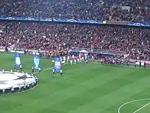 Despite being drawn as the "home" team for the match, Milan chose to wear their all-white away strip for the final; they consider that strip to be their "lucky kit" (Italian: maglia fortunata), having won the European Cup five times in those colours. However, Milan had also lost two finals wearing all-white, most recently against Liverpool in 2005.[28] This decision by Milan meant that Liverpool played the final in their traditional home kit of red shirts, red shorts and red socks. Each of Liverpool's five European Cup titles were won in their all-red strip, and two of these came when they were playing against Italian teams who played in all-white.[4]