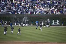 On September 20, the Cubs clinched the NL Central championship with a 5–4 win over the St. Louis Cardinals.[4] Despite their regular season success, the team did not advance past the first round of the playoffs; they were swept 3–0 by the Los Angeles Dodgers in the NLDS.