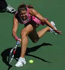 Janković then headed straight to Wimbledon where she lost to Tamarine Tanasugarn in the fourth round. Janković eventually became the 18th female No. 1, replacing compatriot Ivanovic on August 11.[4] At the Beijing Olympics, she lost to eventual silver medalist Dinara Safina in the quarterfinals. At the US Open, Janković beat Elena Dementieva in the final four to reach her first Grand Slam final but lost to Serena Williams. In the fall season, she won three consecutive tournaments at the China Open, the Porsche Tennis Grand Prix and the Kremlin Cup justifying her return to the top spot.