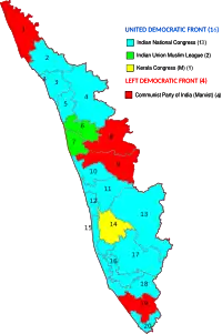 United Democratic Front (UDF) is a Kerala legislative alliance and is allied to United Progressive Alliance (UPA) in the Lok Sabha. LDF comprises primarily of CPI(M) and the CPI, forming the Left Front in the national level. National Democratic Alliance (NDA), led by Bharatiya Janata Party (BJP) contested in all 20 seats.[1]