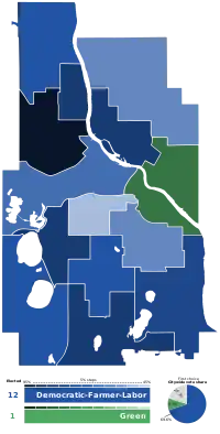 | Minnesota Democratic–Farmer–Labor Party | 24 | 31,167 | 69.57 | 12 | 92.31 | ||