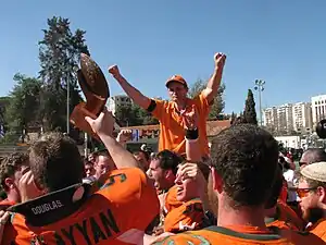 Judean Rebels with Becker Trophy, celebrating the victory in Israel Bowl IV