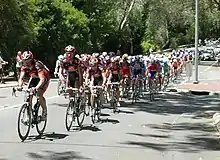 The team's first race of the season was the Tour Down Under. They were noted to be sending a strong squad, including Valverde and former Tour Down Under champion Sánchez, who viewed the race as an important part of a 2010 race program meant to lead to victory in Paris–Nice.[3] Valverde had a chance at victory in the undulating third stage of the race, holding the wheel of world champion Cadel Evans in a select leading group. A moment of hesitation when he was unsure if Evans was attacking for victory let Footon–Servetto–Fuji's Manuel Cardoso escape for the win.[4] Two days later, the team got their first win of the season with Sánchez, as he, along with Valverde, Evans, and Peter Sagan formed a winning breakaway on the Old Willunga Hill Road that almost won sufficient time over race leader André Greipel to give Sánchez the overall lead.[5] Sánchez finished the race the next day in second place overall.[6] In February, Valverde won the Tour Méditerranéen overall without winning a stage, by virtue of his time gap over previous race leader Jussi Veikkanen on the final day's stage to Mont Faron.[7] Later in the month, Sánchez won the individual time trial which closed out the Volta ao Algarve, finishing that event second overall.[8]