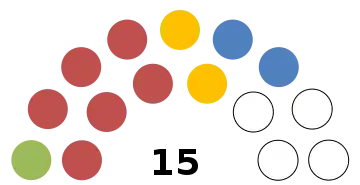 Last election 50.6%, 7 seats 31.7%, 1 seat