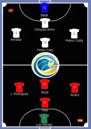 The final of UEFA Futsal Championship 2010 was a futsal match played on 30 January 2010 at the Főnix Arena in Debrecen, Hungary to determine the winner of 2010 UEFA Futsal Championship. The match was contested by Portugal and Spain, and won by Spain by 4 goals to 2 goals.