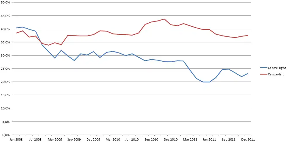On 1 July 2009, Ivo Sanader announced he was resigning the Premiership and leaving his deputy Jadranka Kosor as prime minister. Parliament approved her and the new Cabinet which made Kosor the first woman ever to be appointed prime minister.[4] Ever since late 2008, SDP had been leading the polls, however by a narrow margin. After the sudden resignation of Sanader HDZ plummeted in the polls to their lowest level since 1999 when corruption scandals were rocking the party establishment.[5] There was much speculation, since Sanader hadn't given a reason for his departure, whether the Slovenian blockade was the cause for his resignation.