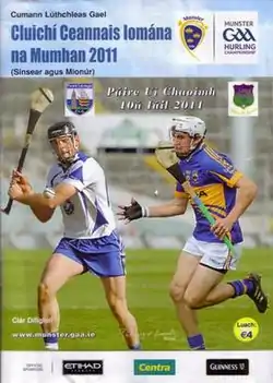 The 2011 Munster Senior Hurling Championship Final was a hurling match played on 10 July 2011 at Páirc Uí Chaoimh, Cork. It was contested by Tipperary and Waterford.[2] The match pitted the 2010 All-Ireland Hurling Champions against the 2010 Munster Hurling Champions. For the first time ever, both Waterford's Senior and Minor hurling teams were making their third Munster Final appearance in a row. It was the first time the two teams had met in a Munster Senior Hurling Championship Final at Páirc Uí Chaoimh since the 2002 Munster Senior Hurling Championship Final.