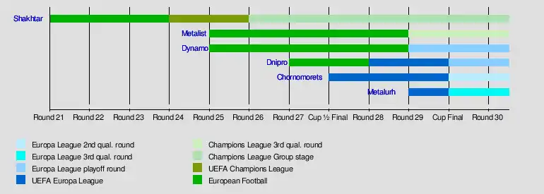 Henrikh Mkhitaryan from Shakhtar Donetsk set a new Ukraine Premier League record for number of goals scored in one season.[4] It is the second season in the league when no clubs were relegated.