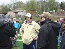 New head coach Paul Chryst being interviewed after the spring Blue and Gold game