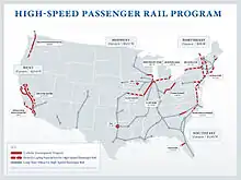 • No new funding for long-distance intercity and high-speed rail was included in the budget.[29] This funding had originally been introduced as part of the American Recovery and Reinvestment Act stimulus bill in 2009, but had proved controversial as several Republican governors elected in the 2010 elections subsequently rejected the federal funding for rail projects in their states. However, funding for 26 short-distance routes eliminated in the House version was restored in the enacted bill.[39]