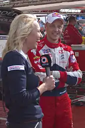 Mikko Hirvonen, who finished second, interviewed during the Rally Finland