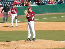 The Razorbacks began the 2013 campaign with a 9–1 victory over the Western Illinois Leathernecks at Baum Stadium. First baseman Eric Fisher, a redshirt sophomore, hit his first collegiate home run in the game, with Jacob Mahan and Brian Anderson both going 2 for 2 at the plate.[5] The following day, the Razorbacks took a 7–2 victory over the Leathernecks with starting pitcher Barrett Astin getting the win. Matt Vinson and Joe Serrano each had 2-RBI singles. Sophomore pitcher Jalen Beeks made his first appearance for the Razorbacks in relief.[6] Trent Daniel gave up six runs (three earned) and received the loss as Western Illinois took the third game, 7–5.[7] The Razorbacks subsequently dropped from #1 in the Baseball America, Collegiate Baseball, and NCBWA polls.[8][9][10]