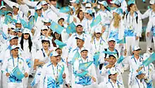 Kazakhstan entering the stadium as the 32nd country
