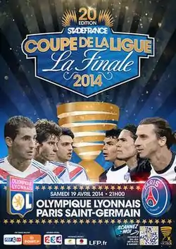 The 2014 Coupe de la Ligue final was the 20th final of France's football league cup competition, the Coupe de la Ligue, a competition for the 42 teams that the Ligue de Football Professionnel (LFP) manages. The final took place on 19 April 2014 at the Stade de France in Saint-Denis and was contested between Lyon and Paris Saint-Germain. PSG won 2–1 and became the first club to win the competition four times, ahead of Bordeaux and Marseille.