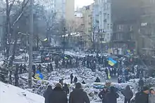 76. Anastasia Vlasova (24 January 2014). "EuroMaidan protesters build new barricades on Hrushevskoho Street". Kyiv Post. Archived from the original on 25 January 2014. Retrieved 24 January 2014.
