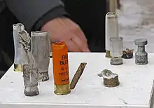 Shells and bullet of ammunition used by police