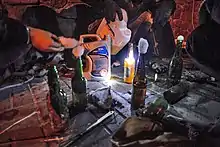 Hundreds of armed "titushky" were reported by eyewitnesses in the vicinity, attacking protesters and passers-by, as well as smashing vehicles; some were reportedly transported into the city on the back of large trucks showing no license plates.[48][49] Soon thereafter, they occupied many of the streets of downtown Kyiv.[50] In one incident, Vitali Klitschko appeared on Franko Street: upon seeing him, the titushky fled.[51] Klitschko then disarmed 2 of them who confessed to him that they were brought into the city from Kherson and ordered to smash cars and bring chaos to the city.[43][52] Automaidan activists detained other titushky in downtown Kyiv who admitted they were promised a payment of UAH 220 ($27) to vandalize the city.[53] A number of the titushky, who were apprehended by the protestors, were joined by political opposition leaders and brought to the opposition's headquarters at the Trades Union Building. They were questioned on live television, confessing their actions and job for the government to incite violence and anarchy. The rounding up of titushky was referred to as the titushky safari.[54]
