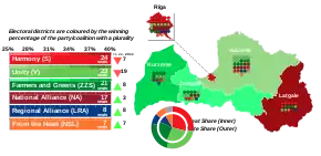 On 27 December 2013, the Reform Party announced an electoral pact with its government coalition partner Unity, with most prominent Reform Party candidates running under the Unity campaign.[2] On 16 July 2014 the Latvian Social Democratic Workers' Party signed a cooperation pact with the Latvian Association of Regions to run under the LAR campaign.[3]