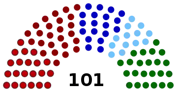 The 101 members of Parliament were elected by party-list proportional representation in a single nationwide constituency.[2] There were four separate electoral thresholds: 9 percent for electoral blocs with three or more parties, 7 percent for two-party electoral blocs, 4 percent for single parties or organisations, and 2 percent for independent candidates.[2]