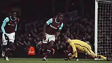 ![]() Mark Noble celebrates scoring West Ham's third against West Bromwich Albion, April 2016 | ||||