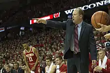 The 2015–16 Wisconsin Badgers men's basketball team represented the University of Wisconsin–Madison in the 2015–16 NCAA Division I men's basketball season. This was Bo Ryan's 15th season as head coach at Wisconsin, before he resigned 12 games into the season. On December 15, 2015, Ryan announced he would retire effective immediately leaving associate head coach Greg Gard as interim head coach. The team played their home games at the Kohl Center and were members of the Big Ten Conference. They finished the season 22–13, 12–6 in Big Ten play to finish in a four-way tie for third place in conference. Shortly after the regular season, Greg Gard had the interim tag removed as he was announced as the permanent head coach.[1] The Badgers were upset by Nebraska in the second round of the Big Ten tournament. They received an at-large bid to the NCAA tournament, their 18th straight appearance in the Tournament. They defeated Pittsburgh and Xavier to advance to the Sweet Sixteen for the third consecutive year. In the Sweet Sixteen, they lost to Notre Dame.
