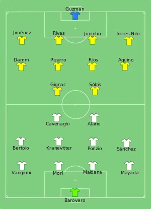 CF9Argentina Fernando Cavenaghi (c) Yellow card 56' downward-facing red arrow 77'