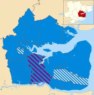 ![]() Map showing the results of the 2015 Maldon District Council election | ||||||||||