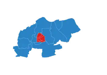 Map of the results of the election. Colours denote the winning party, as shown in the main table of results.