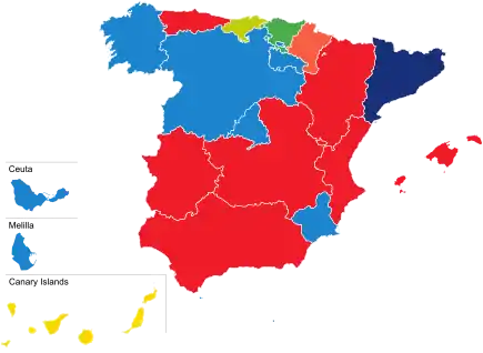 The following table lists party control in autonomous communities and cities. Gains for a party are highlighted in that party's colour.