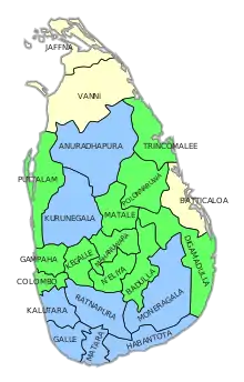 ![]() Polling divisions won by ■ – UNFGG ■ – UPFA ■ – TNA | |||||||||||||||||||||||||||||||||||||||||||||||||||||||||||